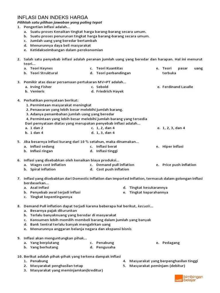 Inflasi indeks harga kebijakan moneter dan kebijakan fiskal. soal ekonomi tentang inflasi dan indeks harga terdiri dari 2 jenis, yaitu soal pilihan ganda dan soal esai atau uraian. Materi soal dan kunci jawaban tvri 24 juli 2020 sma sederajat. indeks yang berfungsi sebagai indikator trens pasar yang artinya suatu pergerakan indeks yang menggambarkan suatu kondisi pasar pada suatu saat, apakah keadaan pasar tersebut dalam keadaan sedang aktif atau sedang turun. Pada pembahasan kali ini juga akan dibahas mengenai inflasi.