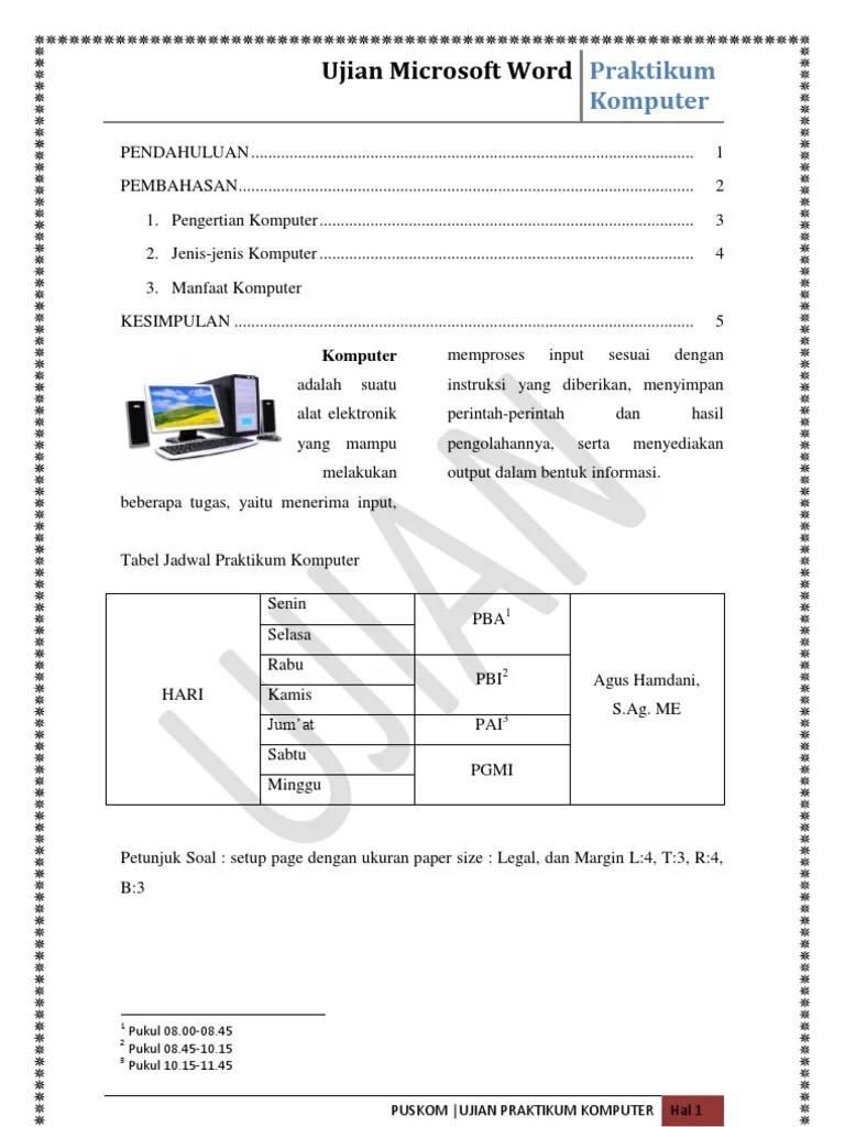 Salah satu contoh system operasi dalam komputer adalah a. soal ujian kursus komputer berikut admin berikan sebagai update soal ujian lembaga kursus komputer terbaru, kali ini soal ujian tersebut khusus untuk paket kursus microsoft office, yaitu soal ujian kurssus komputer ms word, soal ujian kursus komputer ms excel dan soal ujian kursus komputer ms powerpoint. Latihan 1 belajar microsoft word 2010 untuk pemula. 1 menyelenggarakan pendidikan berwawasan kebangsaan yang. Aligment justified jenis huruf : contoh soal microsoft dan jawaban tugas 4. Program aplikasi yang digunakan untuk pengolahan kata seperti membuat makalah, surat , skripsi disebut…. Membuat tabel pada microsoft word 2007. contoh file soal uts lengkap kelas 1 6 sd mi semua mata pelajaran 2016 2017 berikut ini adalah kumpulan dari berbagi sumber tentang contoh soal praktek microsoft excel 2007 dan jawaban yang bisa gunakan untuk bank soal download sd dan diunduh secara gratis dengan menekan tombol download biru dibawah ini. Blognya yayang contoh soal praktek ms word 1. microsoft word merupakan salah satu materi yang akan anda pelajari pada mata pelajaran tik diberbagai jejang, seperti sd, smp, sma. word buat tabel 2 kolom untuk hari / mp senin, excel nilai tik 3 siswa, rata tik di sma dan beri nama up kelas ix nama anda! Kerjakan soal tabel di bawah ini sesuai dengan petunjuk pengerjaan.